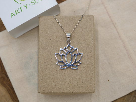 Lotus Necklace Silver Flower Pendant Meditation Jewelry Boho Spiritual Yoga